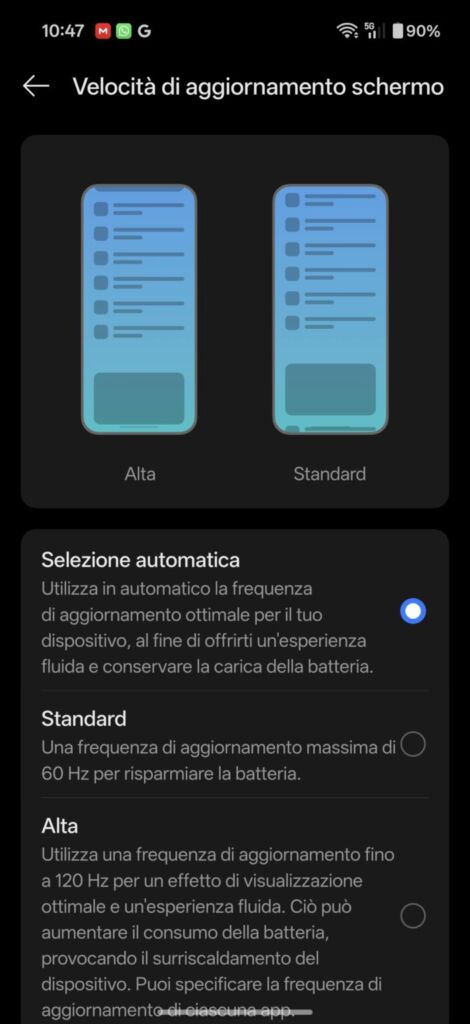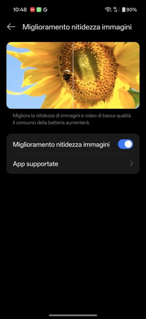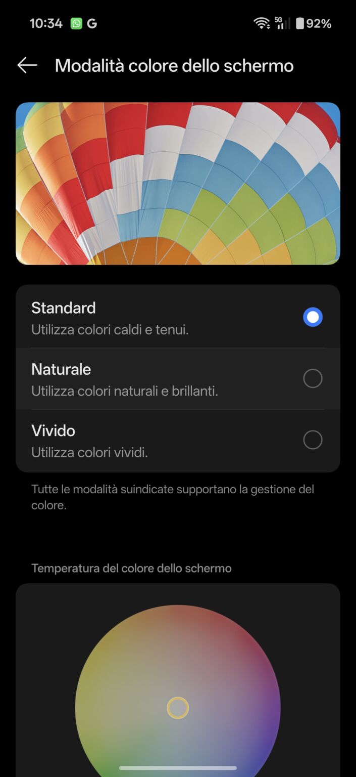 색상 보정이 훌륭하고 설정 범위도 매우 넓습니다. 다크 모드를 예약하고, 항상 활성화할지 여부를 설정하고, 세 가지 어두운 화면 톤을 원하는 대로 설정하는 등 다양한 기능을 제공합니다. 또한 세 가지 색조 설정(표준-자연-선명), 5가지 시스템 글꼴, 세 가지 디스플레이 크기(대-표준-소)를 제공하며, 앞서 언급했듯이 화면 주사율 설정 모드(자동-60Hz-120Hz) 등 다양한 설정이 가능합니다. 간단히 말해, 디스플레이는 이 스마트폰의 강점 중 하나입니다.